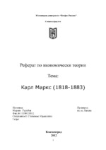 Реферат на тама "Карл Маркс". В него са разгледани биографията му, методология, неговите произведения и възгледите му за принадената стойност, капитала...