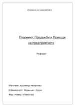 Пласмент, продажби и приходи на предприятието