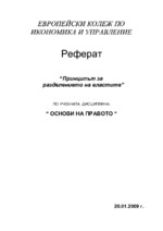 Това е доктрина, според която трите функции на държавното управление –законодателна, изпълнителна и съдебна – трябва да бъдат разделени и изпълнявани от различни органи, определени от конституцията...