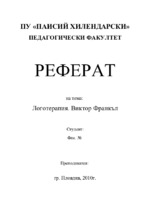Целта, която съм заложила в темата, е да се анализират основните принципи на логотерапията, да се разгледат различните техники, заложени в нея, както и ролята, която играе терапевтът....