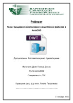 Подробно описание на стъпките при създаване и настройване на шаблон (Drawing Tamplate) за работа с AutoCAD. Информацията поместена в реферата е подходяща за студенти и учители по строителство и архитектура, както и начинаещи потребители на AutoCAD...