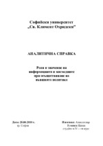 Роля и значение на информацията и масмедиите при осъществяване на външната политика