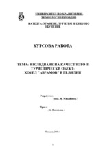 Курсова работа свързана с качеството на обслужванто начините за подобляването му. Към него има и анкети за определянето на качеството на услугите в обекта.