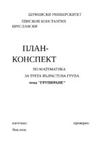 Ход на урока: У: Ученици отворете си учебниците на стр. 18 и погледнете към първата задача (Сравняване на числата чрез нагледни опори - пръчици) Числото 5 по - голямо, по - малко или е равно на 3?